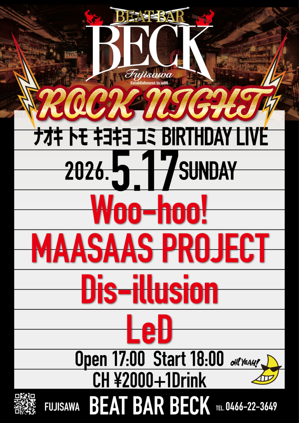 2026/4/25(土) 18:00オープン、19:00スタート Advance Y2,500( 要オーダー) At Door Y3,000( 要オーダー)